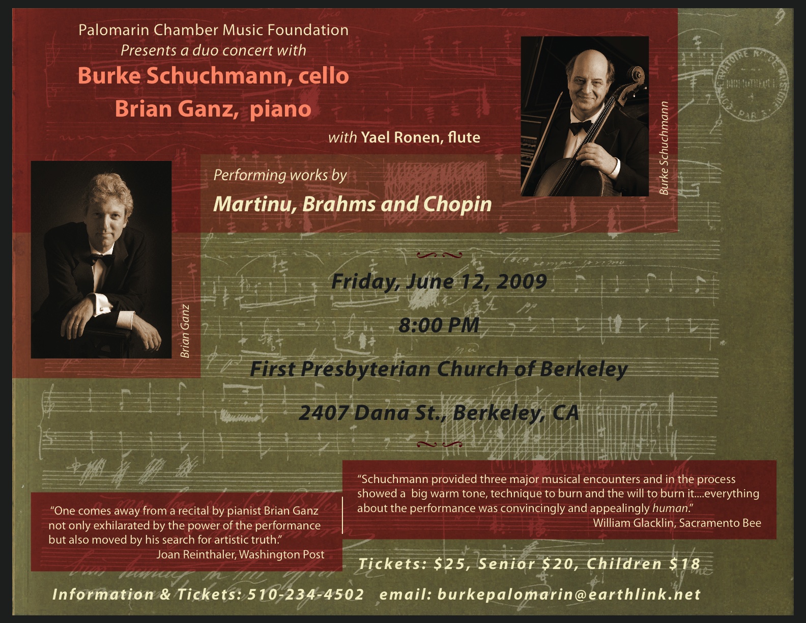 For information email: palomarin.music@gmail.com or phone: 510-234-4502